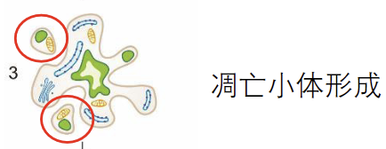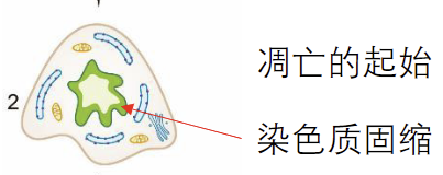 凋亡起始 凋亡的起始以染色体的形态变化为特征:染色质固缩并沿核膜分布 同时,细胞膜也会发生皱缩 凋亡小体形成 细胞质膜发生反折,包裹染色质和细胞器等内容物碎片,形成芽突并逐渐脱离。这些脱离的小泡被称为凋亡小体 凋亡小体被吞噬 凋亡小体形成后被吞噬细胞吞噬并消化
