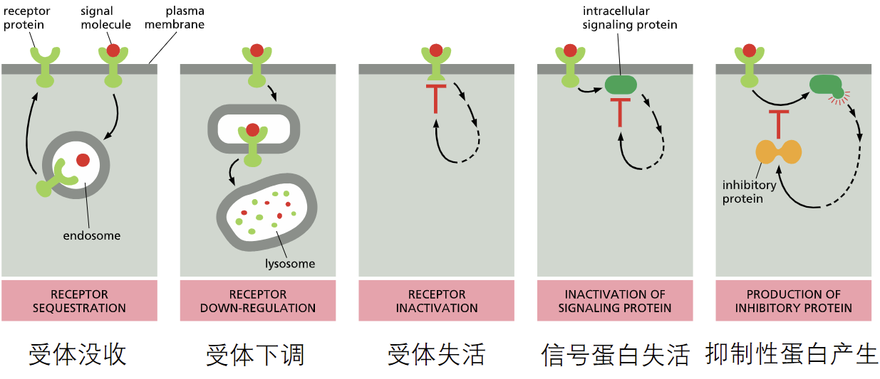 在具体通路内容里,多次提到信号分子的脱敏机制,具体包括如下几种方法: