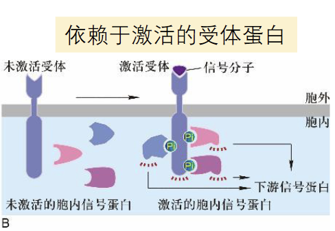 部分受体,尤其是受体酪氨酸激酶等酶联受体,胞内结构域有充足的磷酸化位点,可以帮助胞内的细胞蛋白直接结合到受体上,进而激活下游的信号蛋白。