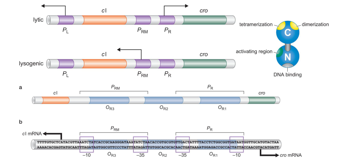 RM: lysogenic (weak promoter) PRE:weak