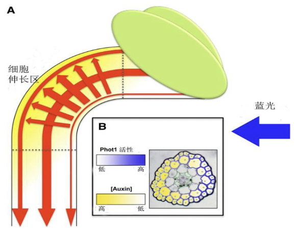 这一类向性运动可能由膜电位引发的膨压变化有关,也可能与 IAA 的不均匀分布有关