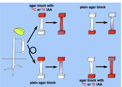 - 具有活性的生长素被极性运输,无活性生长素类似物或生长素结合物不能被极性运输
