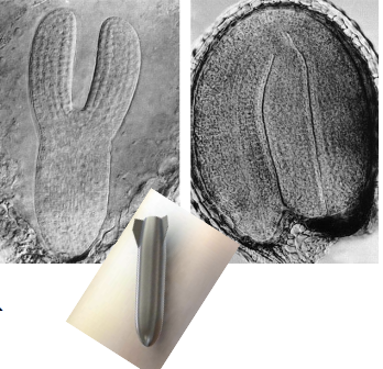 在此时,胚轴开始伸长,子叶原基进一步发育,胚整体长度增加,形似鱼类,被称为鱼雷胚
