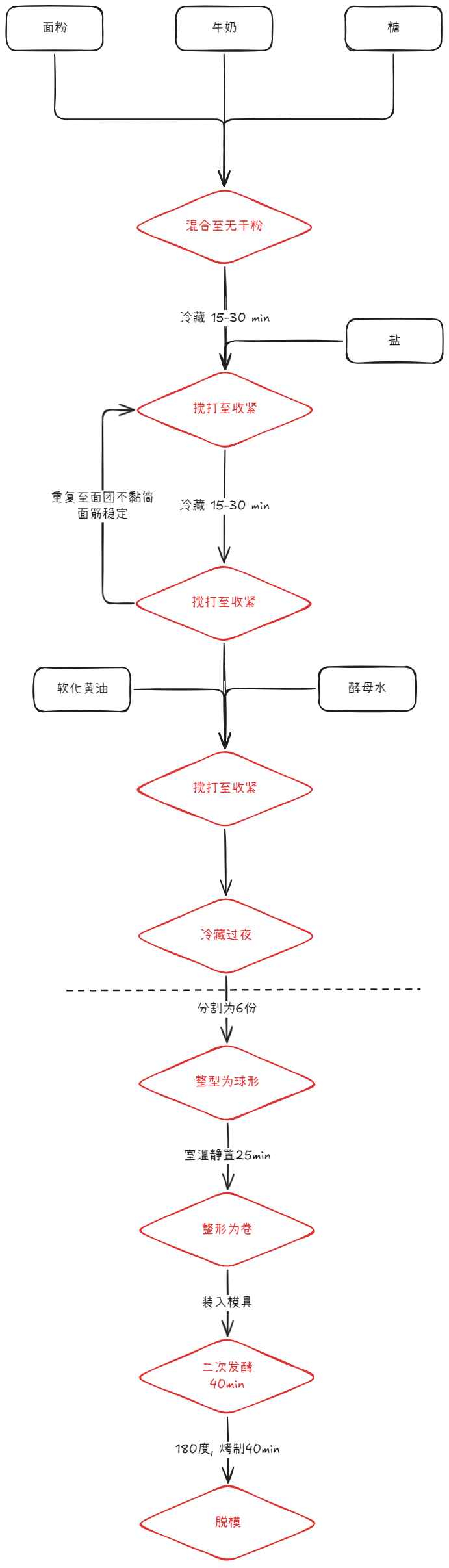 1. 混合面粉,白糖,牛奶1 档 揉至无干粉。视情况加入